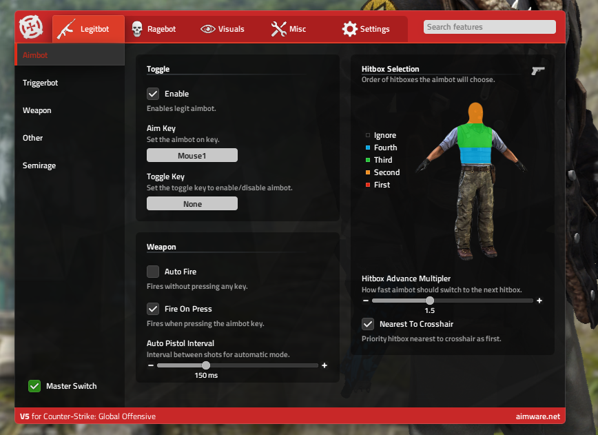 Aimware.net is a cheat provider that has been around since 2013. It is the most popular cheat provider between cheaters or even legit gamers due to it's large userbase and the time of existence. The cheat itself mostly receive a major upgrade yearly, and the lastest verison is v5, which is a recode version of the cheat claimed by the developers. A cracked version is available in February 2023 at here.